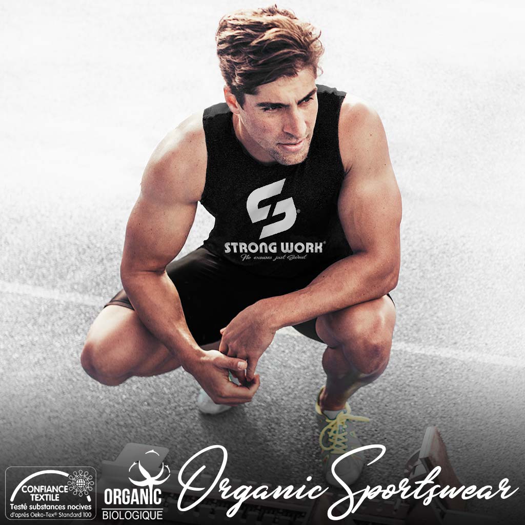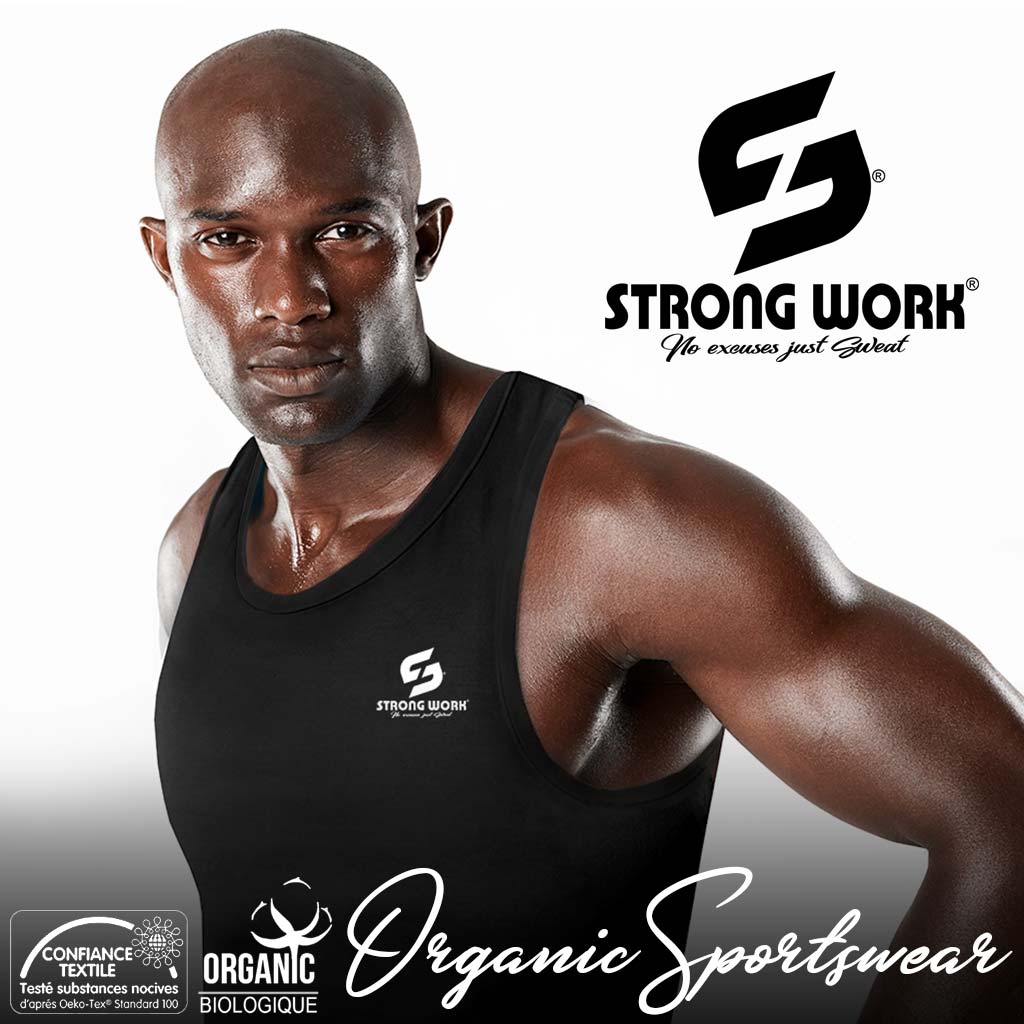 The Strong Work organic tank tops are designed with the aim of offering eco-responsible sportswear adapted to each physical activity. Comfortable and high-quality organic cotton clothing that can be worn during different training sessions. Whether it is for fitness training or running, or team sports such as basketball or football. The Strong Work tank tops, sportswear made of organic and fair-trade cotton that can be worn on the sports field but also outside. Sportswear that can be adapted to different training conditions every day.